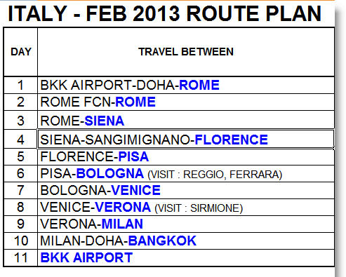 ลงที่ ROME และกลับจาก MILAN (นัดขอทำวีซ่าไว้แล้ว)