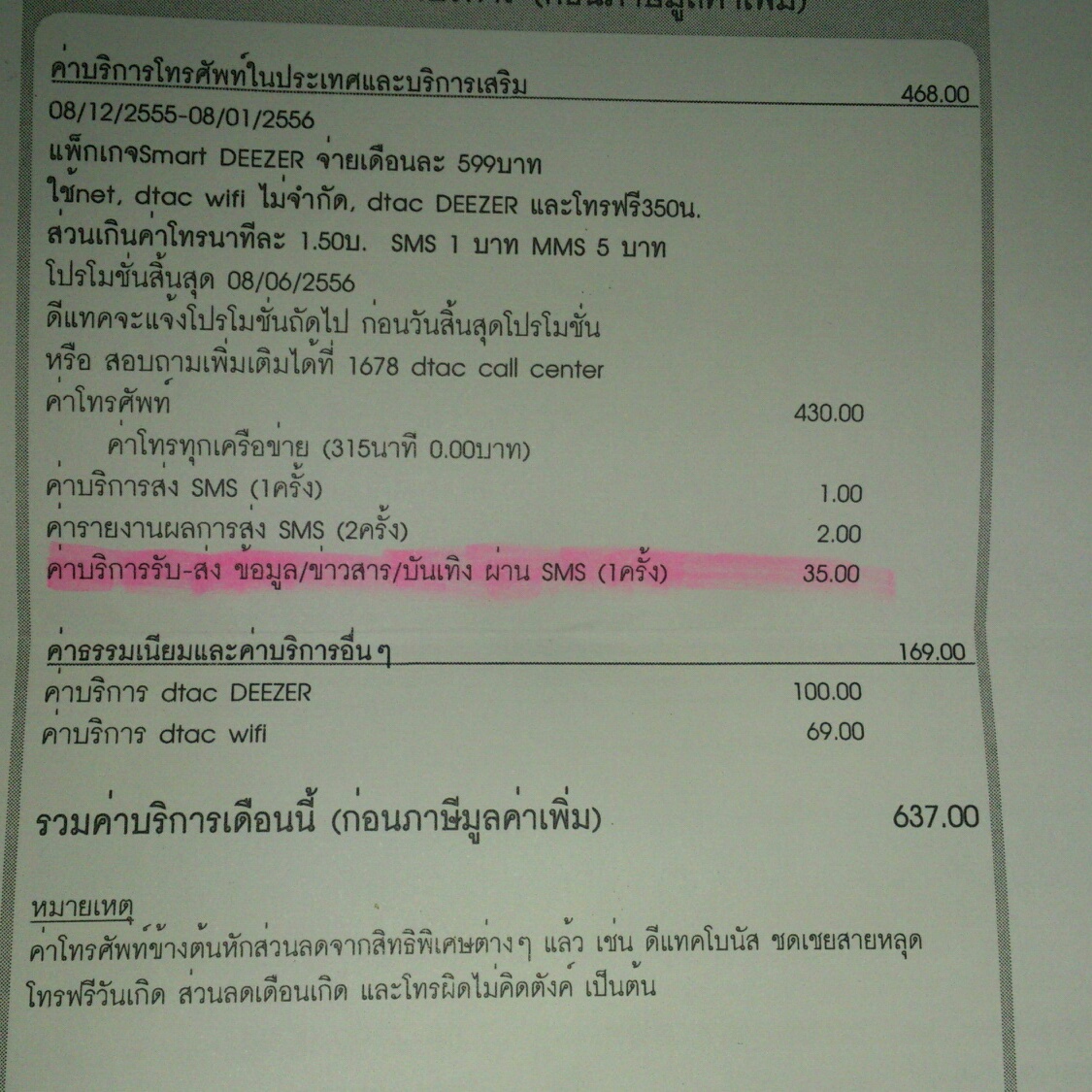 ตรงค่าบริการรับ-ส่ง ข้อมูล/ข่าวสาร/บันเทิง ผ่าน sms (1ครั้ง) 35บาท