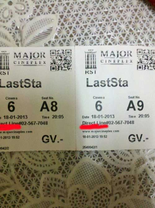 มาที่ B8 เยื่้องผมพอดี เต็มๆ เลยหน้าจอ เกมส์อะไรเหรอครับ น่าสนุกจัง ขนาดซื้อตั๋วมาดูหนัง ยังเล่นซะครึ่งเรื่อง ว่าแต่หยุดทำไมเหรอครับ ฮั่นแน่ แบตจะหมดใช่ไหมครับ คราวหลังพกแบตเสริมซิครับ เล่นต่อจนหนังจบได้เลยนะครับแม่คุณ ขนาดไม่เล่นเกมส์ ยังยกมารูดหน้าจอเล่นเป็น ระยะ ระยะ อีกนะครับ กลัวมันจะหายเหรอครับ -*-