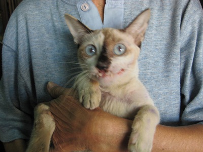ภาพนี้เป็นภาพน้องฟ้าใส มาสวัสดีพ่อแม่พี่น้องห้องแมวทุก ๆ ท่านค่ะ (ริมฝีปากน้องหายไปหมดเลยเนื่องจากพิษของสัตว์มีพิษต่อย)