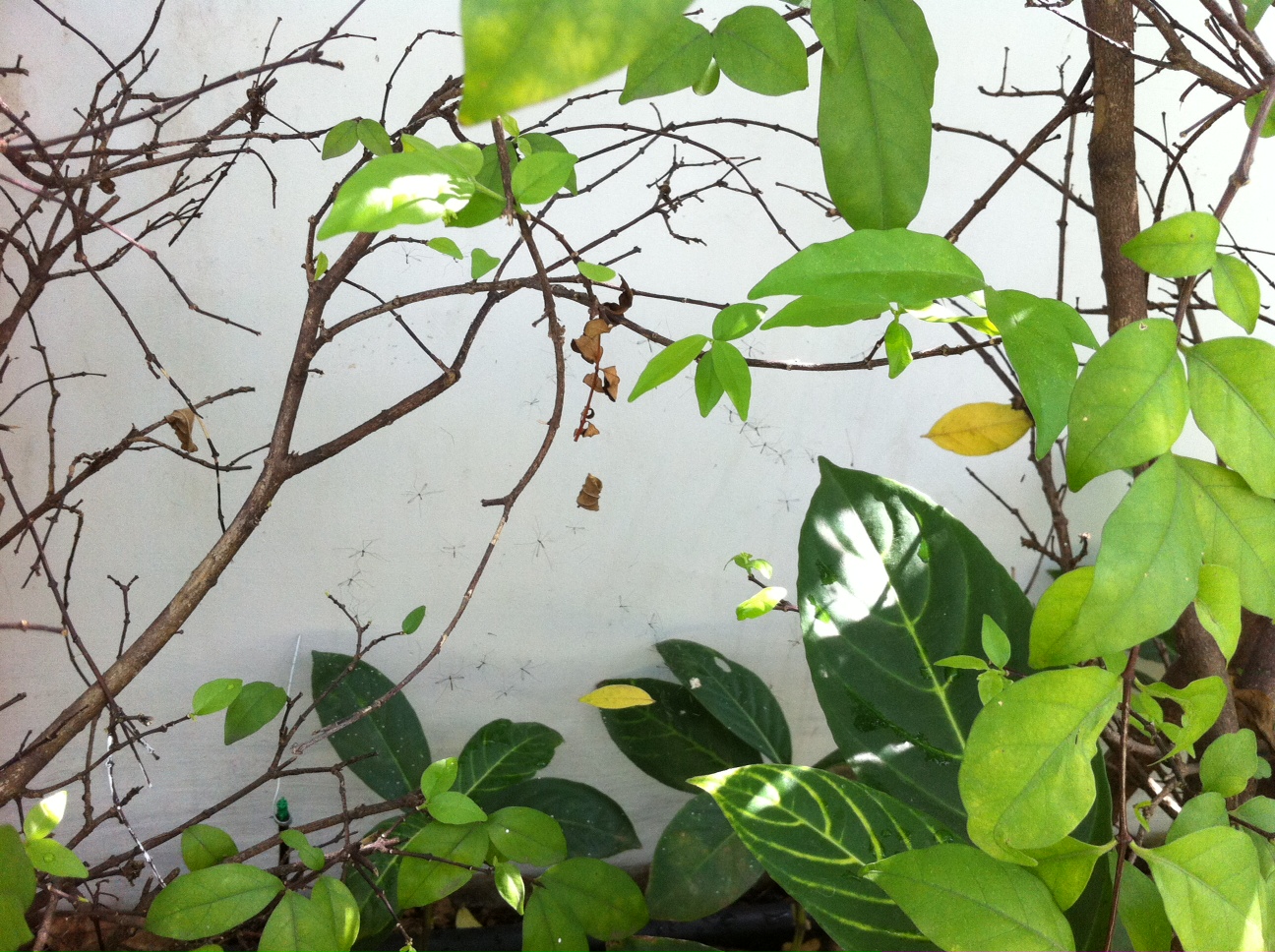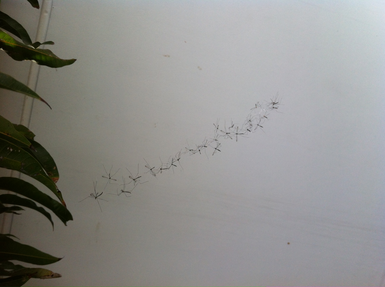 ใต้ต้นมะม่วงตอนเช้ามันเรียงตัวกันเป็นรูปตัวLคว่ำ พอตอนบ่าย(ตอนที่ผมไปถ่ายภาพ) มันมาเรียงกันเป็นส้นตรงปลิวเล่นไปกับลมดูสบายใจ แต่ผมไม่ค่อยสบายใจ กลัวว่ามันคืออะไร จะไปทำร้ายมันก็โดนน้องสาวห้ามไว้