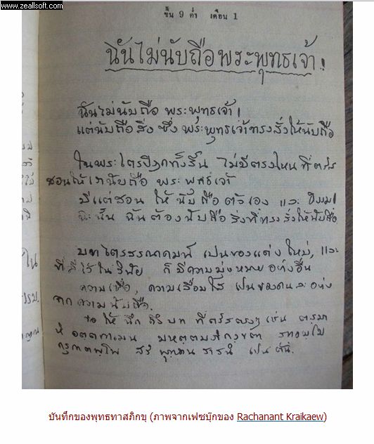 พุทธทาสเขียนไว้ว่า...........ฉันไม่นับถือพระพุทธเจ้า