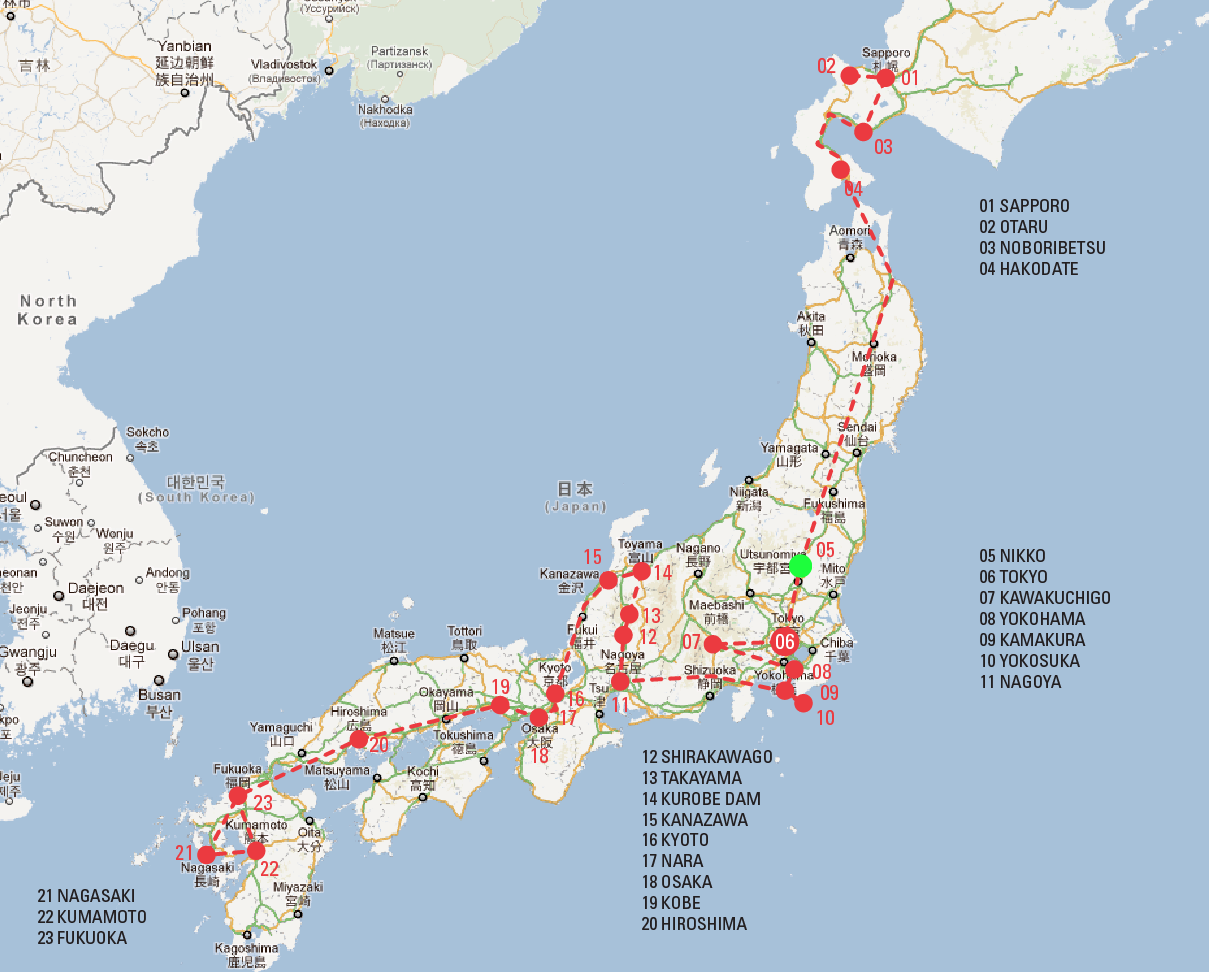 > ฮาโกดาเตะ > นิกโก > โตเกียว > คาวากูชิโกะ > คามาคุระ > โยโกสุกะ