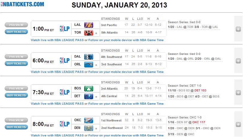 เข้าไปดูคะแนนได้ที่ http://www.nba.com/gameline/20130125/ รายละเอียดของวันนี้ http://www.nba.com/gameline/20130126/