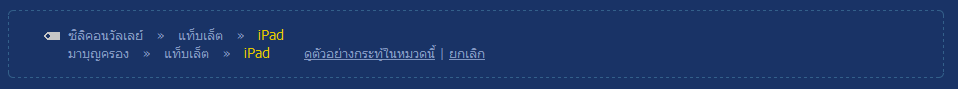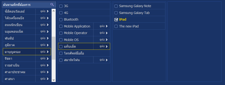 ผมก็เลือกช่องแรกซ้ายสุดเป็น "มาบุญครอง" ช่องถัดไปผมก็เลือก "แท็บเล็ต" และรายการย่อยคือ "iPAD"