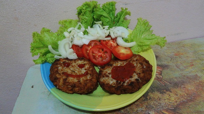 ตอนเย็นพอน้ำกลับบ้าน เจอจานสเต็กวางไว้บนโต๊ะ เดินไปดูใกล้ๆ ยิ้มแก้มปริเลยค่ะ ยิ้มเพราะรูปวาดตามอารมณ์ศิลป์ของคุณแฟนนี่แหละค่ะ เหนื่อยๆ กับงานนี่หายเป็นปลิดทิ้ง เลยเดินไปกอดคุณแฟน หอมแก้มไปฟอดใหญ่เป็นการให้รางวัล เขาก็บอกว่า อย่าลืมกินให้หมดนะ ทำจากใจเลยนะเนี่ย