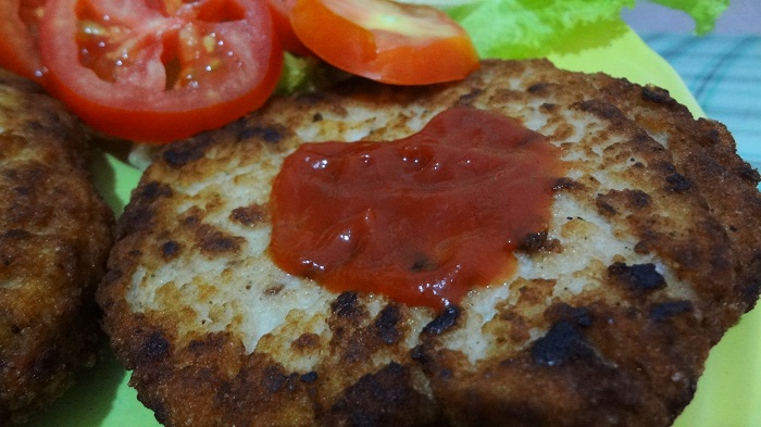 6. เมื่อเนื้อปลากับเครื่องปรุงรสเริ่มเข้าที่จับกันเป็นก้อน แบบว่าสามารถปั้นเป็นลูกชิ้นได้เลย ก็ทำเป็นแผ่นๆ แล้วเอาลงทอด