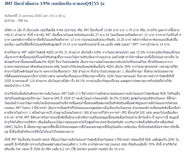 JMT วันนี้จะ ceiling ได้หรือไม่โปรดติดตาม