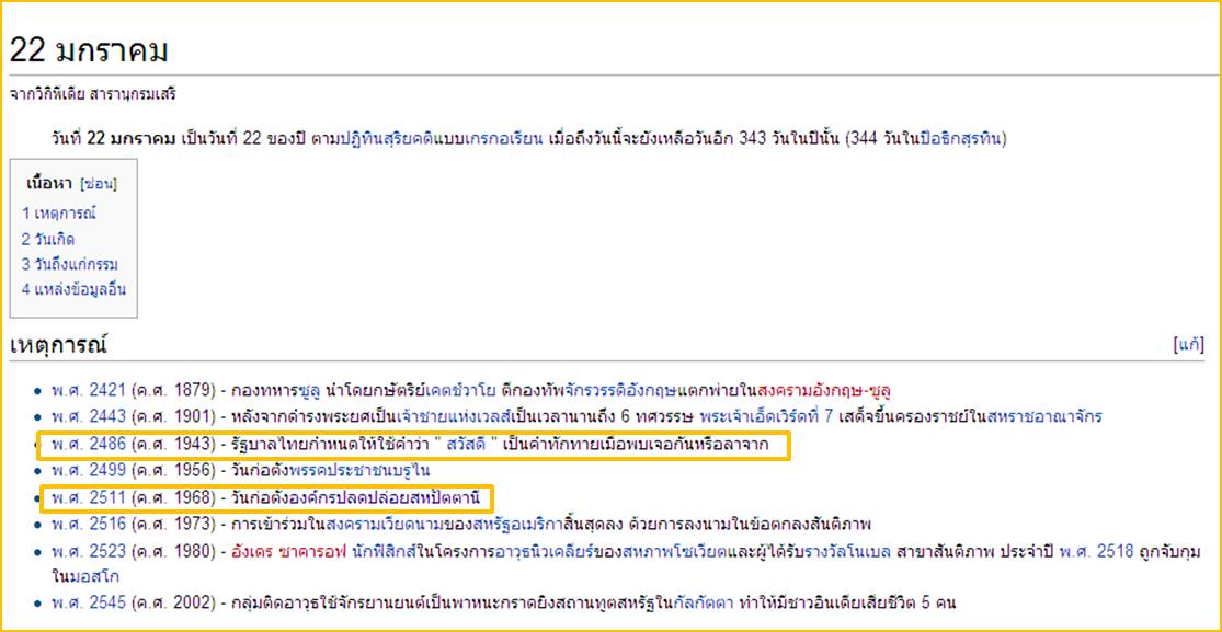 จขกท.มักชอบกดเข้าไปดูใน wiki ว่า แต่ละวันของไทยในอดีต มีเหตุการณ์หรือเรื่องราวใดสำคัญๆ เกิดขึ้น