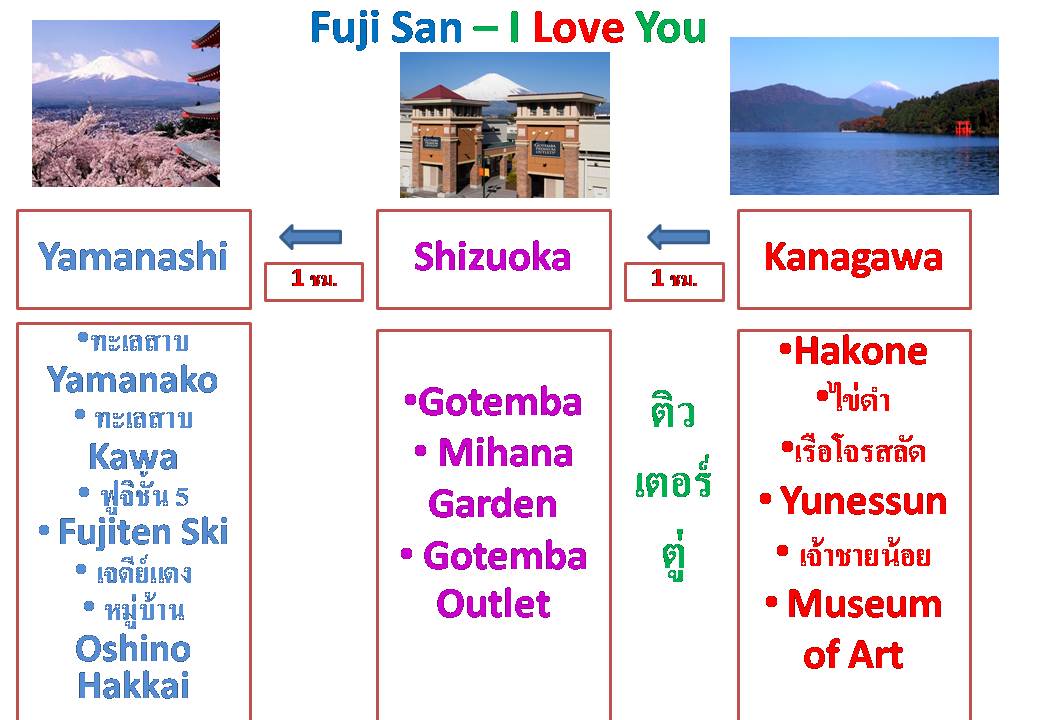คำว่าชมฟูจิ ที่คนไทยชอบไปนั้น ติวเตอร์ขอตีกรอบลงมาแคบๆ ก็คือ 3 จังหวัดได้แก่ Kanagawa / Shizuoka / Yamanashi .... เหมือน อยุธยา สระบุรี ลพบุรี ..... เพื่อนๆ ต้องระบุลงไปเลยว่าฟูจิจุดไหน ......