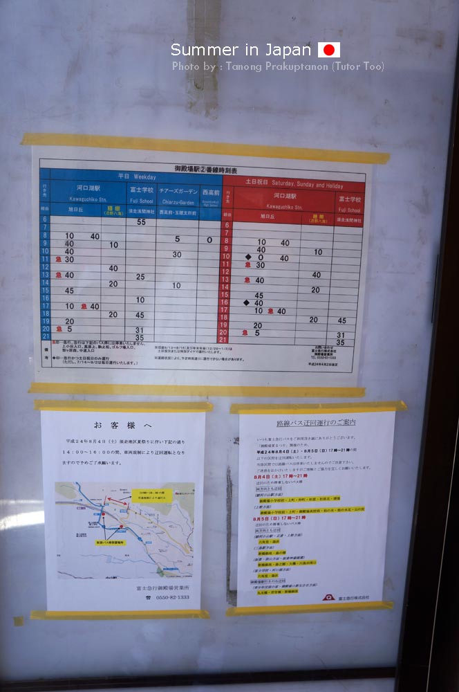 ตัวอย่างตารางบัสจาก Gotemba ไป Kawaguchiko