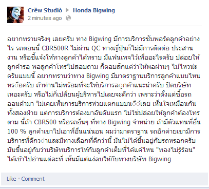 ไม่ได้โชว์พาวเวอร์ แต่เคยทำงานบริการมาก่อน มีคนเคยบอกว่า "การบริการต้องมาก่อน" นี้ถ้ามีบริษัทหรือตัวแทนจำหน่ายแข่งกับ Bigwing ผมว่า Bigwing เน่าแน่