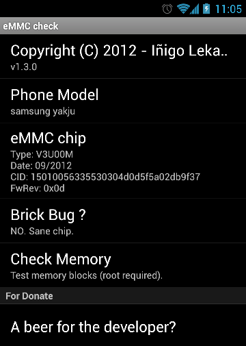 สามารถตรวจสอบรุ่น eMMC chip ด้วย app "eMMC check"