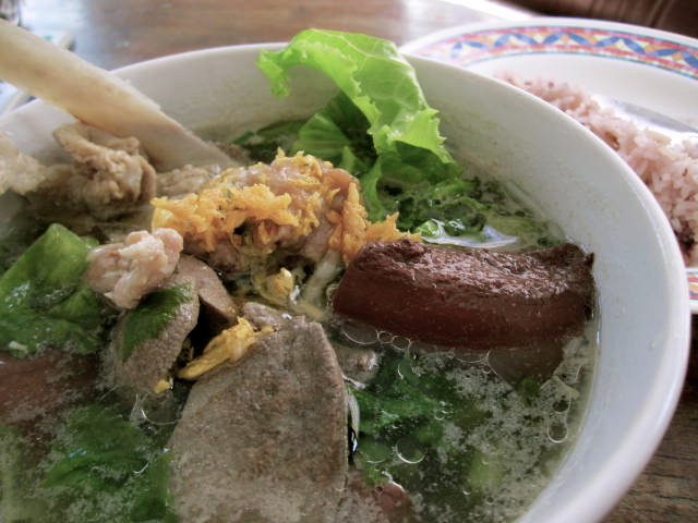 เริ่มมื้อเช้ากับต้มเลือดหมูค่ะ คุณน้าที่บ้านทำเอง อร่อยมาก ใส่เครื่องได้เยอะตามใจชอบเลย ที่สำคัญอัดผักไว้ข้างล่างเยอะมาก