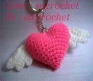 พวงกุญแจหัวใจติดปีก ไหมพรม โครเชต์ น่ารักมาก