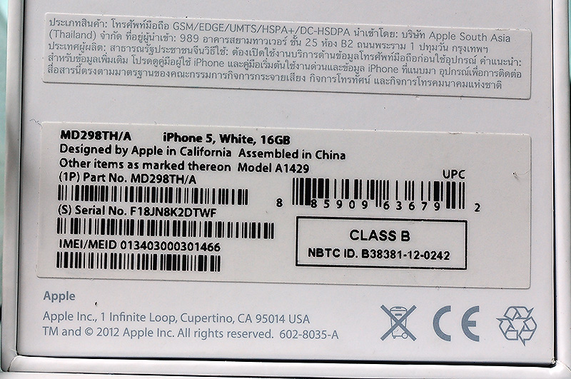 iPhone 5 สีขาว 16Gb IMEI 013403000301466