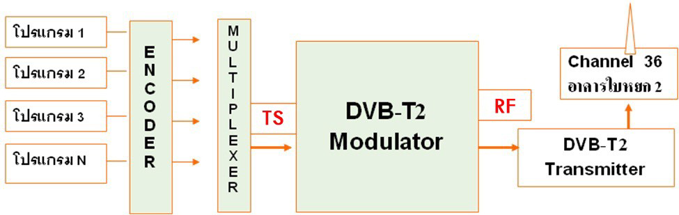 ทุกช่องรายการแล้วส่งต่อเข้า Encoder IP เพื่อทำการมอดูเลตสัญญาณ แล้วส่งสัญญาณไปยังเครื่องส่งบนอาคารใบหยก 2