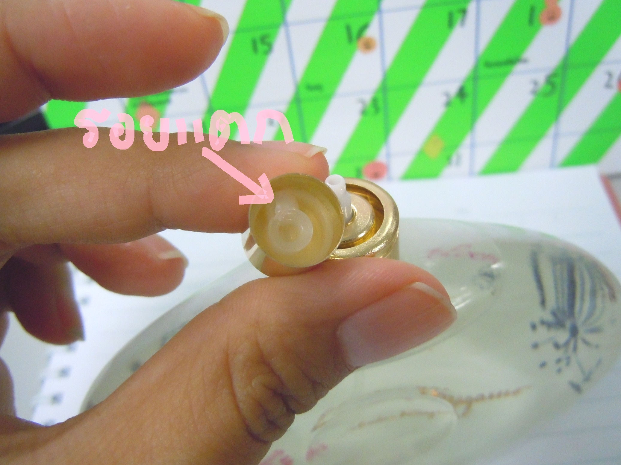 กลับมาบ้านเราเลยลองแกะหัวสเปรย์ออกมาดู ซ่อมยังไงก็คงซ่อมไม่ได้ล่ะค่ะ