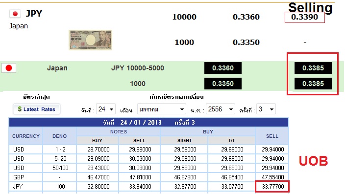 เงินเยน ที่ UOB ขายถูกกว่า Superrich มาหลายวันละ