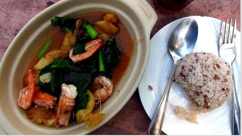 ถึงอุทัยธานี หยุดที่ร้านเซเว่น และซื้อพลาสเตอร์ยา นำมาติดกางเกงจักรยานด้านใน เพื่อป้องกันการเสียดสี. ไม่แน่ใจว่าจะอยู่ได้นานแค่ไหน. ดูที่Google Maps เห็นร้านอาหาร ชื่อว่าร้าน “นกน้อย” ในอุทัยธานี ที่นักท่องเที่ยวคนไทยกล่าวถึงบ่อยๆ อยู่บนทางที่มาพอดี. หยุดดูว่าที่ร้าน มีอะไรขายบ้าง. เป็นร้านขายอาหารทะเล, จึงค่อนข้างมีราคาแพง (ตามมาตรฐานคนไทย จานละ 100-120 บาท หรือ3-6ดอลลาร์) แต่ปรุงน่ากิน, ผมลองสั่ง ราดหน้ากุ้ง. ซึ่งคิดว่า มีเส้นก๋วยเตี๋ยวนำมาผัด จากนั้นราดน้ำเกรวี่มีกุ้งและผัก, ถ้าพูดถึงราดหน้า ก็หมายถึงน้ำราด, ผมไม่เอาเส้นก๋วยเตี๋ยว, สั่งเฉพาะกุ้งและปลากรอบๆ. อร่อยมาก.