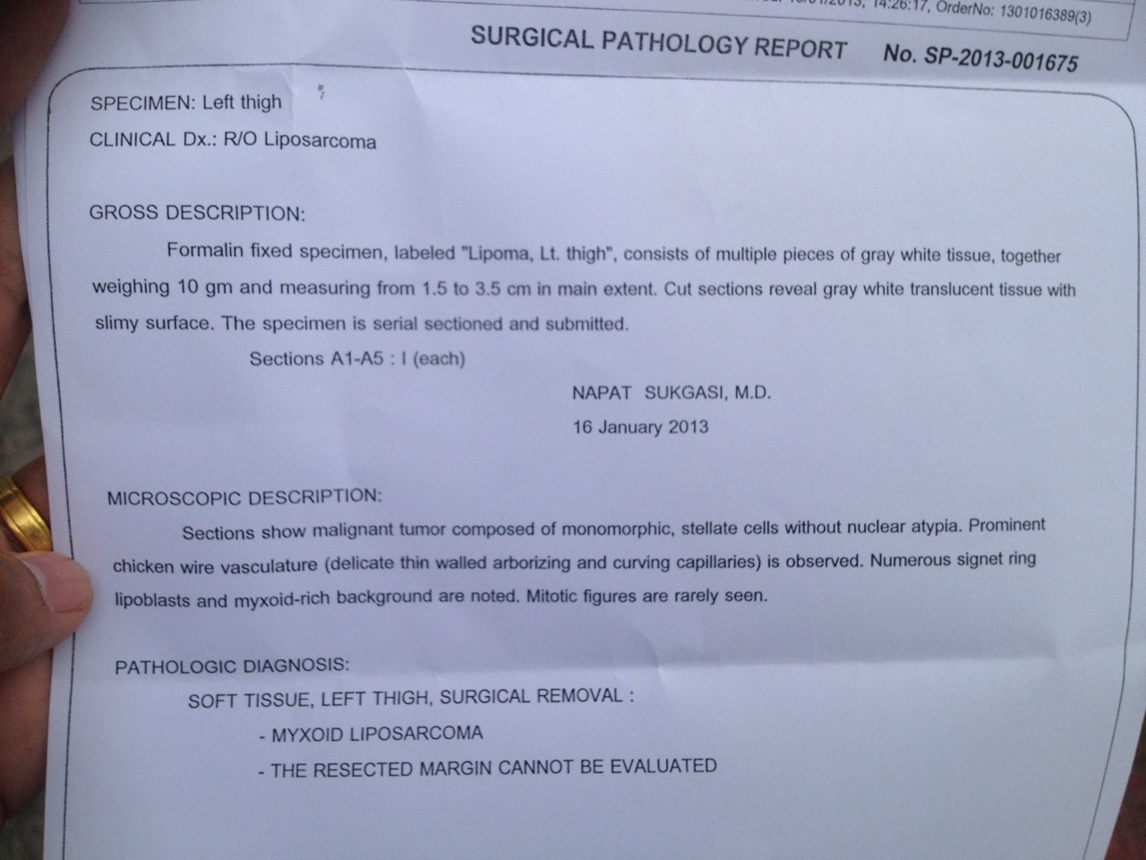 เกี่ยวกับการผ่าตัดของพี่ชายผมครับ Surgical Pathology Report ช่วยหน่อยครับ