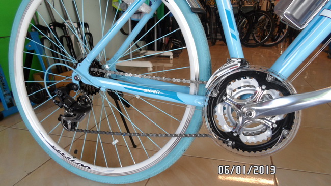 ชุดขับเคลื่อน ตรงตีนผีเหมือนจะเขียนshimano tourney ซึ่งเป็นรุ่นต่ำสุด สเปคก็บอกว่าเกียร์ชิมาโน่แต่ไม่รู้ว่ากี่ชิ้น จานหน้าสงสัยจะไม่ใช่