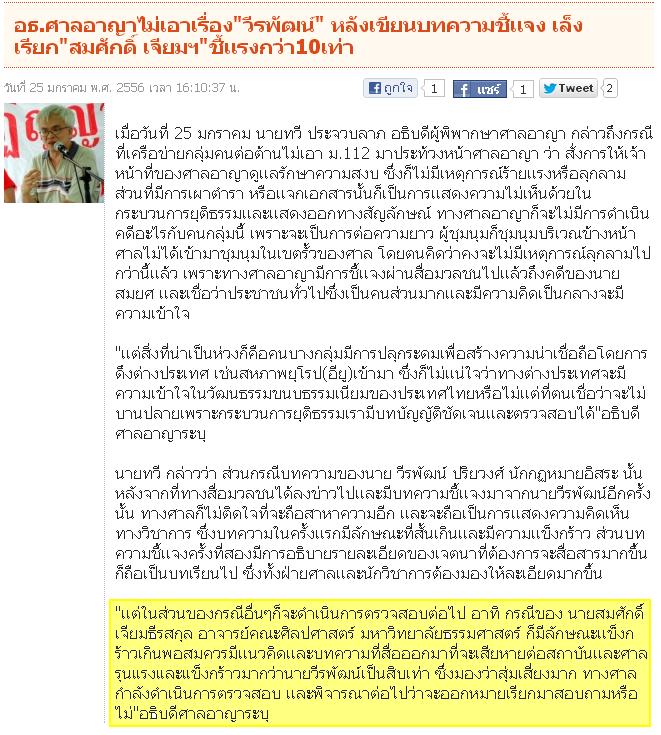 สะแหล่นไปอ่านข่าวของ เมเนอร์เจอร์ออนไลน์ ..งงมาก..ปวดหัวโซ่ ------- " อธิบดีศาลอาญาชี้ศาลลงโทษจำคุก 10 ปี “สมยศ” หมิ่นเบื้องสูง เหตุเผยแพร่บทความ ลักษณะดูหมิ่นสถาบันฯ ยันชัดไม่ใช่ค