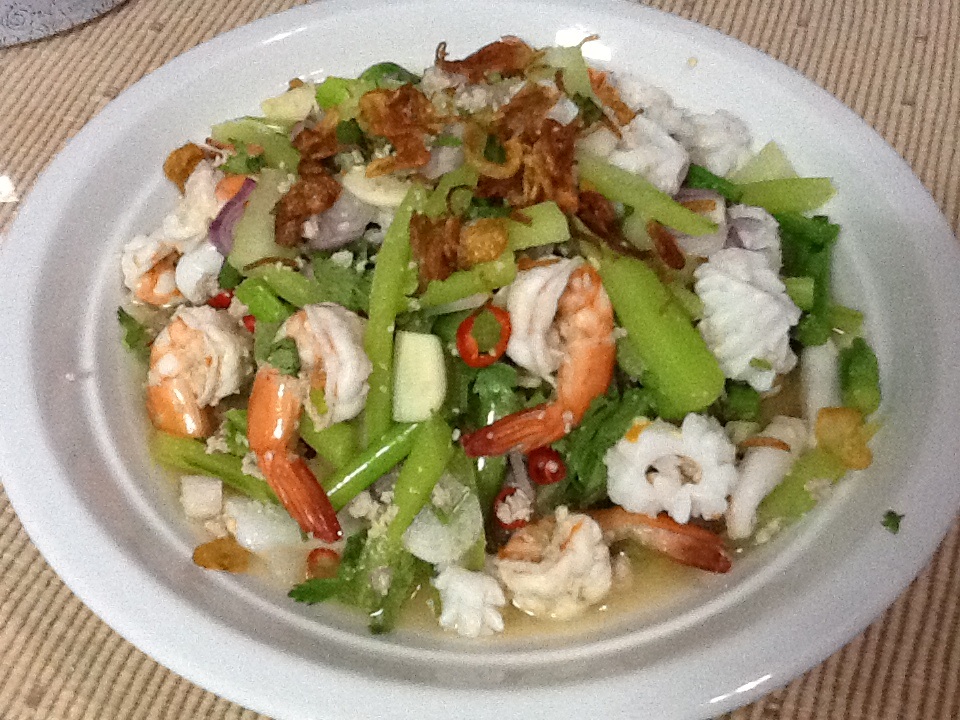 ยำก้านคะน้ากุ้งสด ทำไมแต่ละร้านลวกกุ้งมาก่อน??