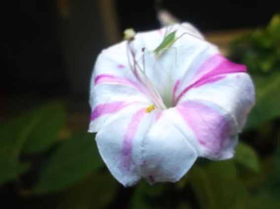 เป็นดอกบานเย็นขาวชมพู ที่ออกดอกมาไม่ซ้ำในแต่ละวัน มีให้ตื่นเต้นทุกเช้าเลยค่ะ เพราะว่าตอนเย็นกลับไปดูไม่ทัน นี่คือโฉมหน้าแขกผู้มาเยือนโดไม่ได้รับเชิญ เลยสละให้เค้าไปเลย 1 กิ่ง อันนี้เป็นส่วนหนึ