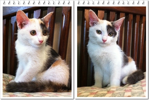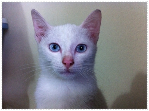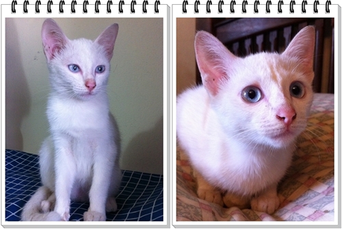 เรื่องมีอยู่ว่า เมื่อวานตอนเย็น 25 ม.ค. ได้เดินกลับบ้าน และเดินผ่านบ้านหลังหนึ่งได้เห็นลูกแมววิ่งเล่นไปมาตามประสาแมวเด็ก และบ้านหลังนี้ก็อยู่ติดถนนซึ่งเป็นซอยแยกมาจากถนนหลัก และมีรถผ่านไปมาตลอด และยังมีหมาอีกหลายตัว ซึ่งผมเห็นแล้วก็รู้สึกไม่ดีเลย พอดีได้เจอกับตัวเจ้าของแมว เลยได้สอบถามพูดคุย ผมถามว่า ไม่กลัวลูกแมวถูกหมากัดหรือครับ เจ้าของตอบว่าพอหมาวิ่งมาลูกแมวก็รีบวิ่งเข้าบ้าน ผมถามต่อว่า ทำไมไม่ให้อยู่ในบ้าน เจ้าของตอบว่า ก็ปล่อยให้วิ่งไปวิ่งมาแบบนี้บางครั้งก็จับใส่กรง เจ้าของยังบอกอีกว่า ถูกรถทับตายไป 2 ตัวแล้ว ผมรู้สึก เศ้รามาก คือเค๊าเลี้ยงแบบปล่อยอะครับ ผมก็ถามต่อไปว่าเคยมีคนมาขอไปเลี้ยงหรือไม่ เจ้าของตอบว่าไม่มี ผมเลยบอกไปว่าถ้าผมขอหละ เจ้าของตอบว่าเอาไปซิ แล้วจะเอาไปยังไง ผมบอกผมมีถุงผ้า พอได้มาผมรีบกลับบ้านเลยครับ มาถึงบ้านจับน้องแมวมาอุ้มตัวเหม็นมากๆ เลยปล่อยให้ปรับตัวกับสิ่งรอบข้างสักพัก จึงจับอาบน้ำจนตัวขาวและไร้กลิ่น จัดการเป่าด้วยไดร์จนแห้ง พาไปถ่ายพยาธิอันดับแรก แต่ก็อืม คือแบบว่า แมวงอกอีกแระ ว่าจะพอแล้วนะ เมื่อวันจันทร์ก็เพิ่งพากลับมาหนึ่ง วันศุกร์อีกหนึ่ง ตอนนี้รวมเป็น 11 สาวน้อยตัวแรกชื่อ มาริโกะ เคยแนะนำตัวไปแล้ว สาวน้อยรายล่าสุด ให้ชื่อว่าสุดสวย เพราะเธอสวยจริง อายุประมาณ 3เดือนเท่ากัน สาวน้อย สุดสวย สีขาว หางยาว ตาสีฟ้า เลยอยากรู้ว่ามีเชื้ออะไร