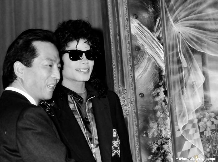 Michael attends the unveiling of a painting of himself titled The Book made by Australian artist Brett Livingstone Strong at the Beverly Hilton Hotel in Los Angeles.