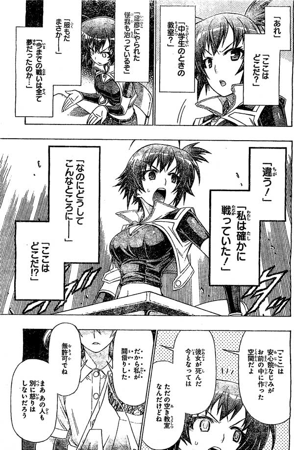 เมดากะคิดเลยว่าที่นี่มันที่ไหน พอดูๆก็เหมือนห้องเรียนตอนม.ต้น พอดูร่างกายก็เห็นว่าบาดแผลจากอิอิฮิโกะถูกรักษาแล้วแม้แต่เสื้อผ้าทำเอาเมดากะคิดว่านี่เป็นความฝันรึเปล่า แต่เธอก็รู้เลยว่าไม่ใช่ รู้ว่าตัวเองพึ่งสู้มาแต่ไม่เข้าใจว่าทำไมตัวเธอถึงมาอยู่ที่นี่และที่นี่ที่ไหน ตอนนั้นก็มีเสียงคนๆหนึ่งบอกเมดากะว่าที่นี่เป็นช่องว่างที่อันชินอินสร้างเอาไว้ให้กับเมดากะ แต่อันชินอินตายไปแล้วตอนนี้ก็เลยเป็นเพียงห้องที่ว่างเปล่า และเพราะงั้นตัวเธอก็เลย "สร้างการใช้" โดยไม่ได้รับอนุญาตแต่ก็คิดว่าอันชินอินคงให้อภัยแน่