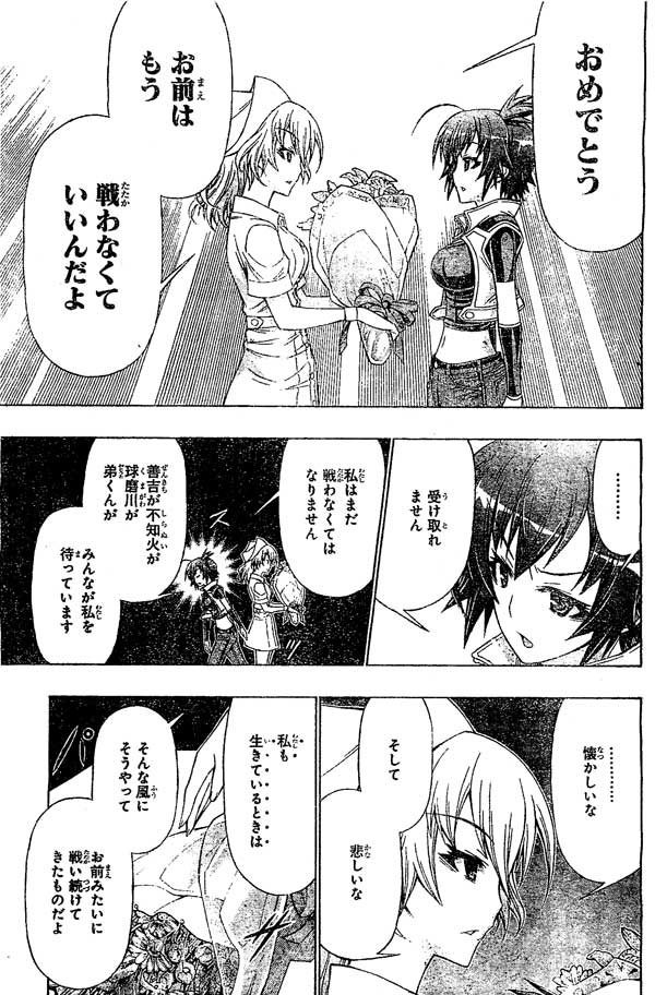 ฮาโตะบอกยินดีด้วยกับเมดากะที่เมดากะไม่ต้องสู้อีกต่อไปแล้ว แต่เมดากะยอมรับไม่ได้บอกเลยเธอจะขอกลับไปสู้ต่อ บอกเซ็นคิจิ ชิรานุอิ คุมางาวะ และคาโมเมะยังรอเธออยู่ ฮาโตะบอกพอนึกถึงความทรงจำมันก็น่าเศร้า คิดว่าตอนที่เธอยังมีชีวิตเธอก็ต่อสู้อย่างเมดากะตอนนี้