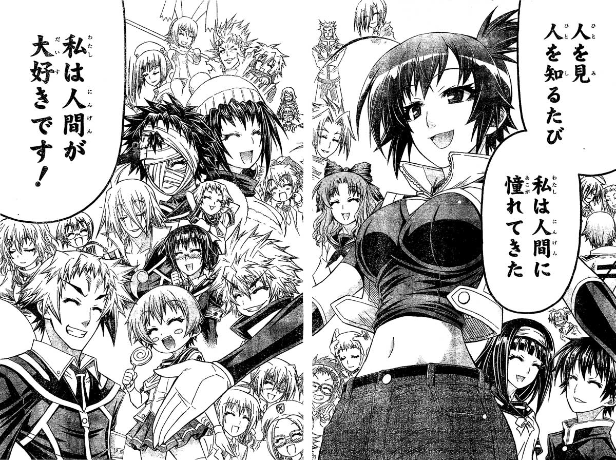 เมดากะบอกเลยตราบใดที่ความรู้สึกนี้ยังอยู่กับเธอ แทนที่ไปตามโลกที่จะก้าวไป เธออยากจะถามโลกที่จะก้าวไป แต่ฮาโตะบอกเลยว่าแบบนั้นเหมือนฆ่าตัวตาย เมดากะจะต้องตายจริงๆแน่ในครั้งหน้า เมดากะบอกแน่นอนว่าเธอเองก็กลัวตาย แต่สิ่งที่เธอกลัวจริงๆคือการตายโดยที่เป็นสัตว์ประหลาด เธออาจจะทำหน้าน่ากลัวตอนตาย นัยน์ตาขาว ปากเปิดน่าเกลียด ยอมรับเลยว่าเธอเองก็ไม่อยากให้เพื่อนได้เห็นตัวเองสภาพนั้น รู้ว่าถ้าไปตัวเองคงจะตาย แต่เธอก็อยากจะตายอย่างมนุษย์ ไม่ใช่สัตว์ประหลาด