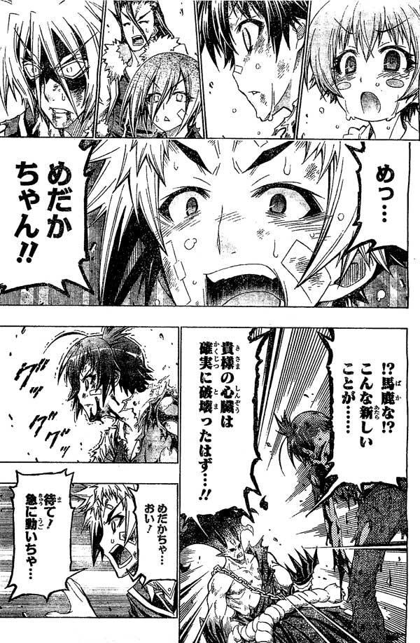 พวกเซ็นคิจิตะลึงมากกว่าที่จะดีใจด้วยความคิดที่ไม่น่าเชื่อ เช่นเดียวกับอิอิฮิโกะที่ยังพูดเลยว่าเป็นไปไม่ได้ หัวใจของเมดากะหยุดเต้นไปแล้วแน่ๆ เมดากะก็เริ่มจะขยับตัวแต่เซ็นคิจิก็บอกเมดากะอย่าขยับตัวทั้งๆที่...