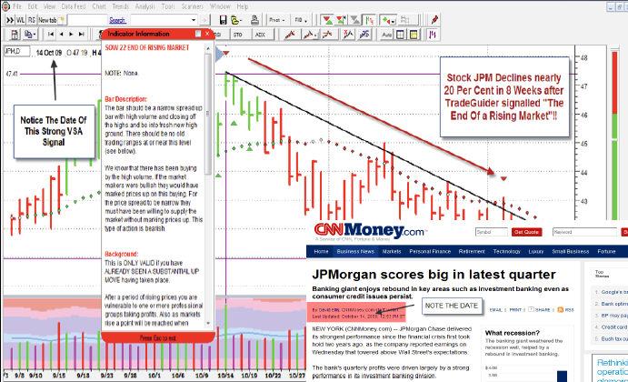 ดูตัวอย่างหุ้น JP Morgan ราคาสูงขึ้นต่อเนื่อง และถูกเทขายทำกำไรเมื่อมีการตีพิมพ์ข่าวผลประกอบการยอดเยี่ยมในวันเดียวกัน