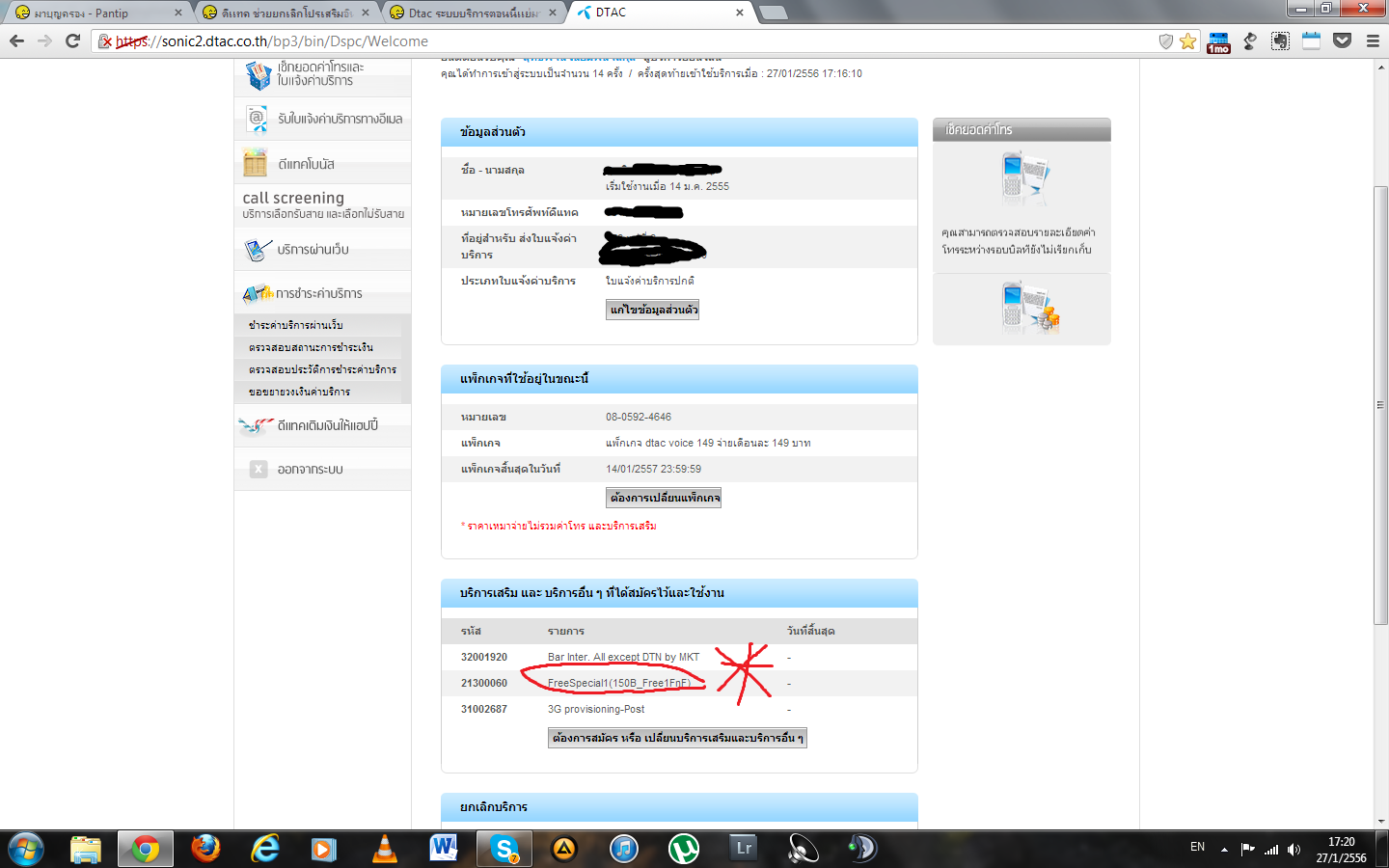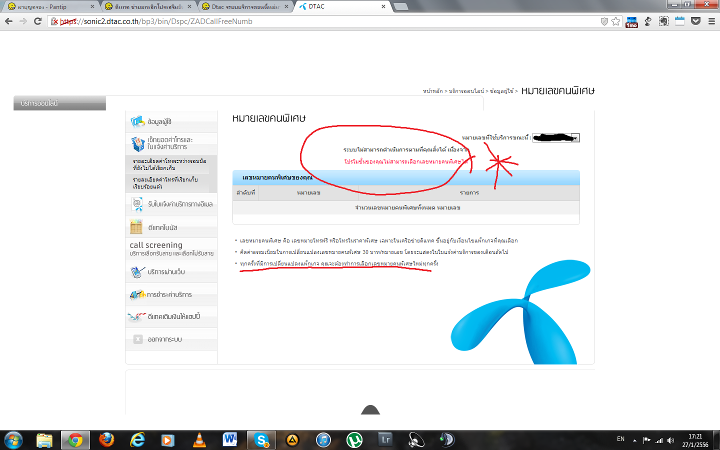 มาถึงบางอ้อพอมาเชคเบอร์คนโปรดที่ผมลงทะเบียนไว้มันอันตรธานหายไปเลย และจากรูปที่ 1จะเห็นว่าผมไม่ได้เปลี่ยนแพ็คเกจอะไรเลย