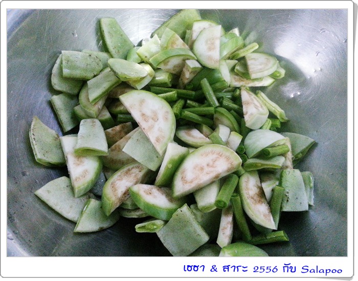 ใส่ผักทั้งหมดลงไป พร้อมเติมน้ำให้พอท่วมผัก