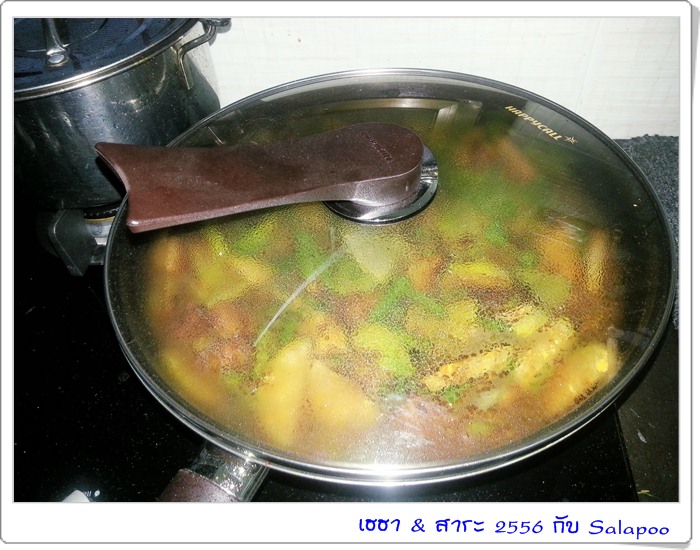 ไปดูทีวี ทำเป็นลืม สักครึ่งชั่วโมง มาส่องดูเปื่อยได้ที่ไปประมาณ 80 % จัดการใส่มะเขือเทศ