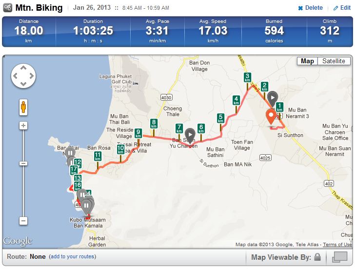 ทริปแรกวันเสาร์ครับ หลังจากสัปดาห์ก่อนไป-กลับ 60 กม. บ้านพร-สะพานสารสิน ครั้งนี้หัวใจมันเรียกร้องเหลือเกินครับ ในช่วงปีที่ผ่านมาที่ไปอยู่ที่เขาหลักและเอารถไปใช้ที่นั่น ทุกครั้งที่ได้กลับบ้านที่ภูเก็ตและเดินทางผ่านหาดกมลาก็อดที่จะตัวสั่นตื่นเต้นไม่ได้ที่จะกลับมาเหยียบเขากมลาแห่งนี้อีกครั้ง ห่างหายไปร่วมปี ไม่รู้ว่าตัวเองจะยังไหวไหมเพราะห่างหายการปั่นไปนานเหลือเกิน