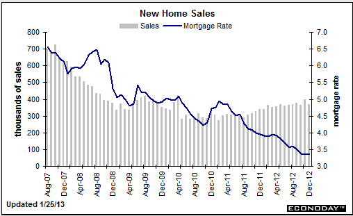• ยอดขายบ้านใหม่ของสหรัฐในเดือนธ.ค. 2555 ร่วงลง 7.3% จากระดับเดือนพ.ย. สู่ระดับ 369,000 หลัง ซึ่งสวนทางกับการคาดการณ์ และบ่งชี้ว่า การดีดตัวขึ้นของตลาดที่อยู่อาศัยของสหรัฐจะต้องใช้เวลา หลังจากที่ฟื้นตัวขึ้นเป็นปีแรก