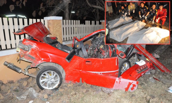 สยอง! วัยรุ่นซิ่งเก๋งแหกโค้ง พลิกคว่ำตาย 3 ศพ อ.เมือง จ.เชียงราย
