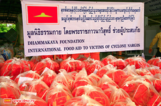 มูลนิธิธรรมกายได้นำถุงยังชีพพร้อมสิ่งของที่จำเป็นกว่า 2 ตัน ไปให้ความช่วยเหลือผู้ประสบภัยจากพายุไซโคลนนาร์กีสยังประเทศสหภาพเมียนมาร์ รวมทั้งสิ้น 5 ครั้งด้วยกัน ในวันที่ 8, 20, 21พฤษภาคม และ 9, 18 มิถุนายน พ.ศ. 2551