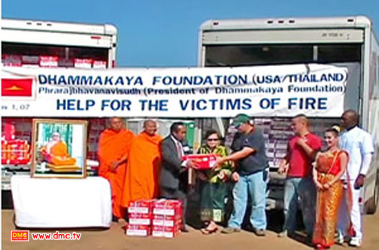 มูลนิธิธรรมกายและวัดพระธรรมกายมอบสิ่งของแก่ผู้ประสบอัคคีภัยที่อเมริกา