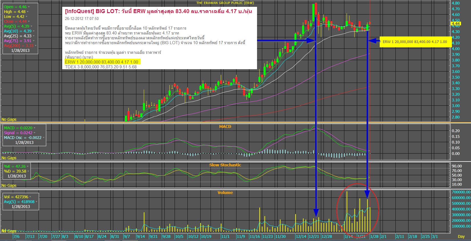 - วันที่ 26 ธ.ค. 55 มีการซื้อขาย Big lot 20,000,000 หุ้น ราคา 4.17 บาท