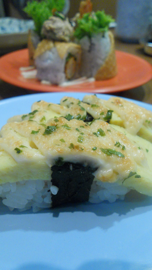 ราคาซูชิจานสีครีมถูกที่สุด ตามมาคือ ฟ้าและเขียว ชมพู ดำ แดง (จานแดง 6.8 ริงกิต)