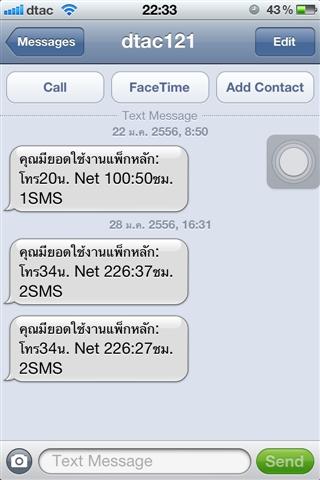 ผมพึ่งย้ายค่ายจาก True-H มาเป็น Dtac ยังไม่ทันจะครบเดือนย้ายมาใช้เพจเก็ตรายเดือน โปรโมชั่นVoice499 ซึ่งผมก็เลือกเป็นโปรโมชั่นโทรตรงๆไม่ได้จะใช้Internet แต่ ใช้งานมา15-20วันก็มีSMS แจ้งมาว่ารอบบิลนี้คุ