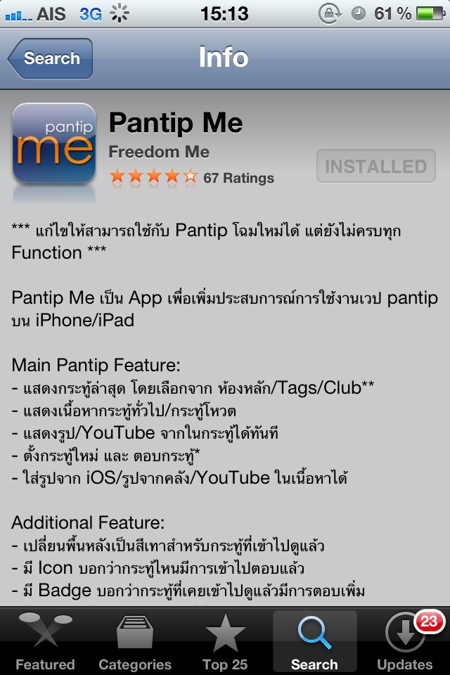 เย้ App pantip me ใช้ได้แล้วค่ะ
