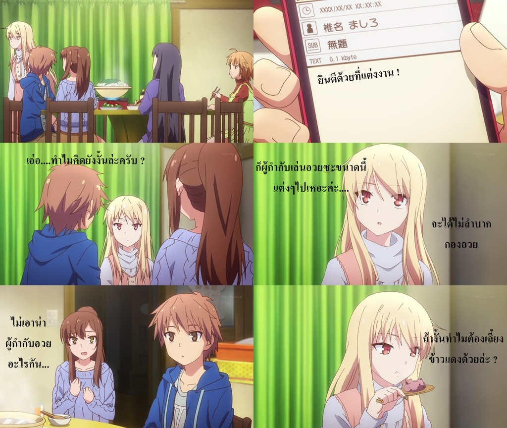 พอโซราตะบอกสายไปแล้ว ให้ส่งเป็น "ยินดีด้วย" สิ มาชิโระก็งอน บอกงั้นก็ไม่เหมือนที่นานามิส่งน่ะสิ
