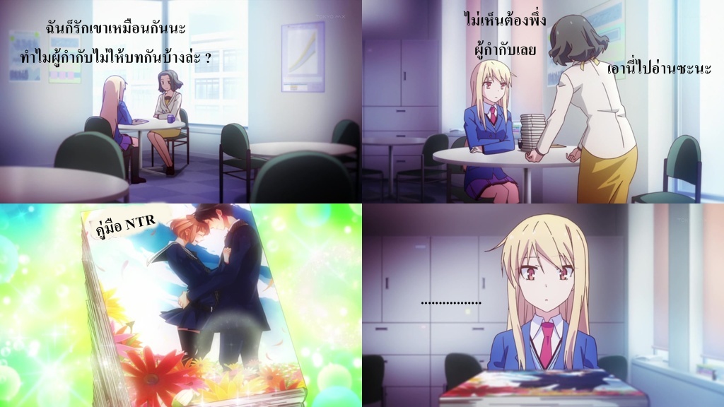 โซราตะเตรียมตัวนำเสนองานเกม ส่วนนานามิมาเจอมิซากิกำลังวาดภาพอนิเมอยู่